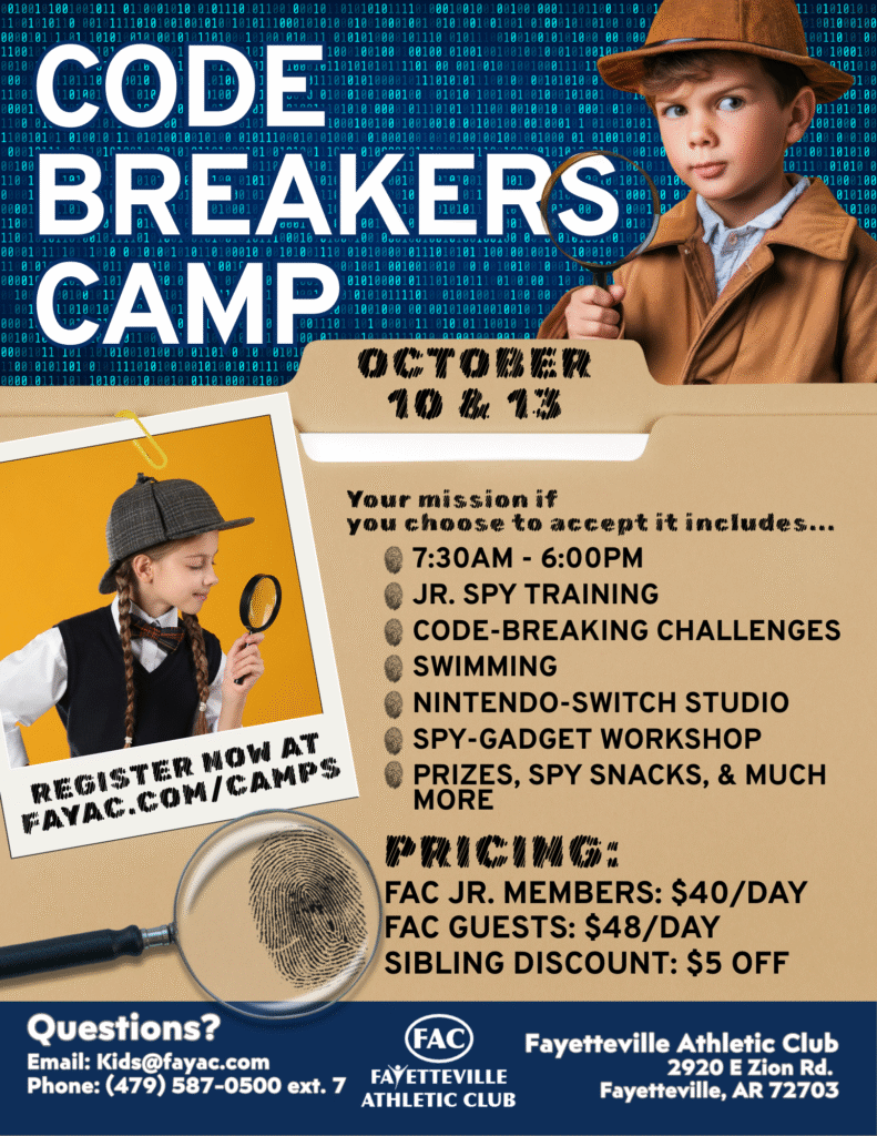 The payment for the camp must be paid by the Friday before the day of the camp in order to register your child(ren) for the FAC School Day Out Camp. The balance will be billed the Friday prior to the event. This balance must be paid by a credit card or bank account on file with FAC. Payments must be received for your camper to attend the camp. Non-payment by the required due dates will result in relinquishing the camper’s space in the camp. FAC Junior Membership is required for each child to receive the Member discount for the camp. Changes or cancellation requests must be received a minimum of 5 days prior to the day of the camp and must be made in writing to the Director. FAC member discounts will be voided, and additional charges will occur if the FAC Junior membership is canceled at any time during the program duration. A $25 returned payment fee will be applied to any returned payments. Fayetteville Athletic Club accepts, Visa, Master Card, Discover, American Express, bank drafts and checks. I agree to abide by the Billing policy that has been presented.